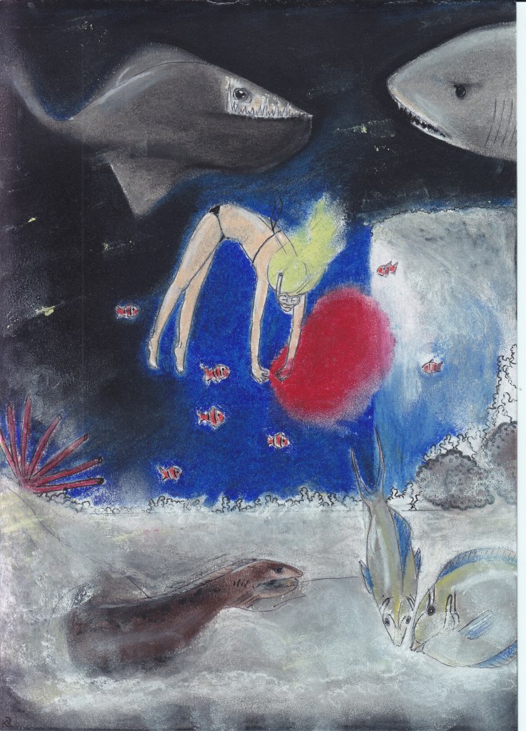 Tegninger i tørrpastell 210 x 297 mm, utstillit i Selvikvillaen i 2017.